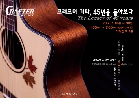 크래프터는 2017년 크래프터 기타의 운영사 ㈜성음악기의 45주년을 맞이해 크래프터 기타가 그동안 걸어온 시간을 되돌아보는 전시를 연다고 밝혔다.